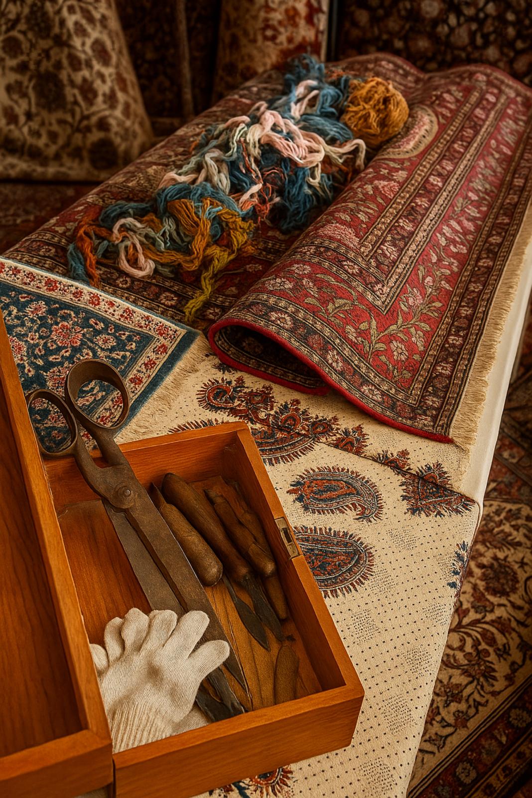 Vérification de l’éclat des couleurs, souplesse du tapis et conseils personnalisés pour l’entretien à domicile.